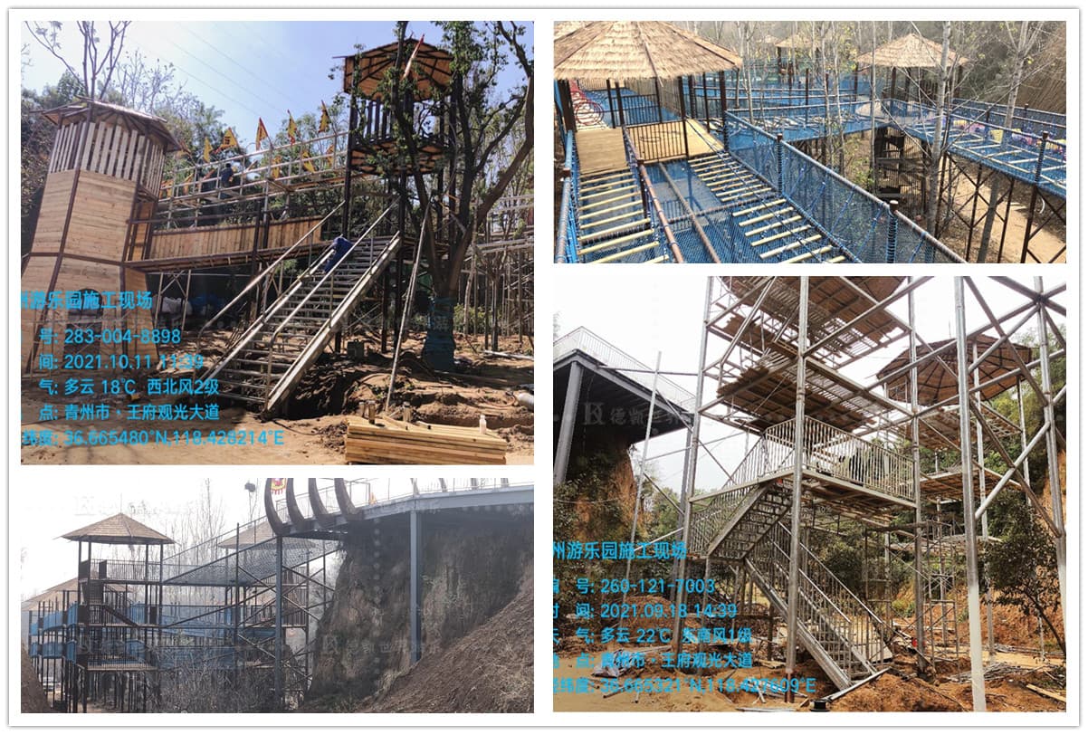 此次三期樂(lè)園項(xiàng)目主要以拓展設(shè)施為主,包括王府城寨、玻璃橋、秋千樂(lè)園、大型淘氣堡、繩網(wǎng)橋等。