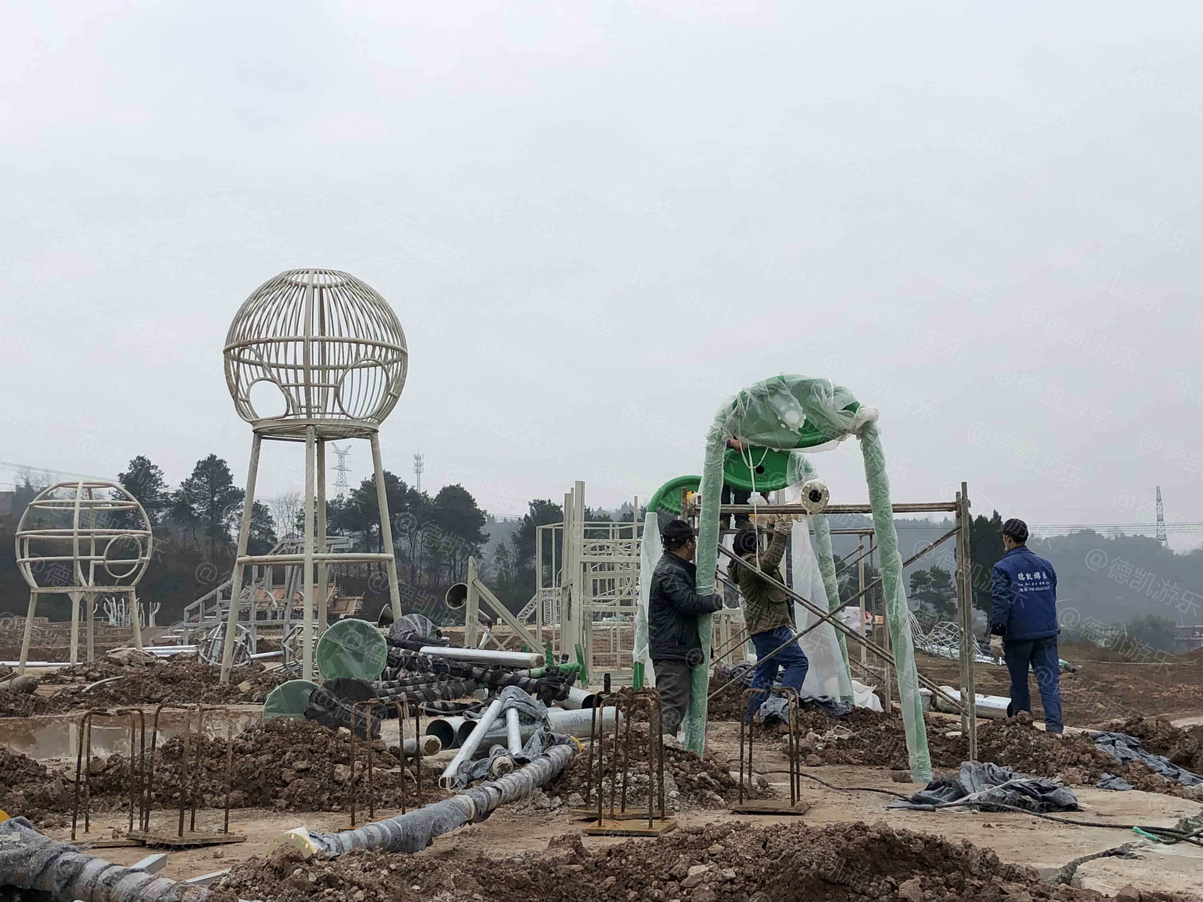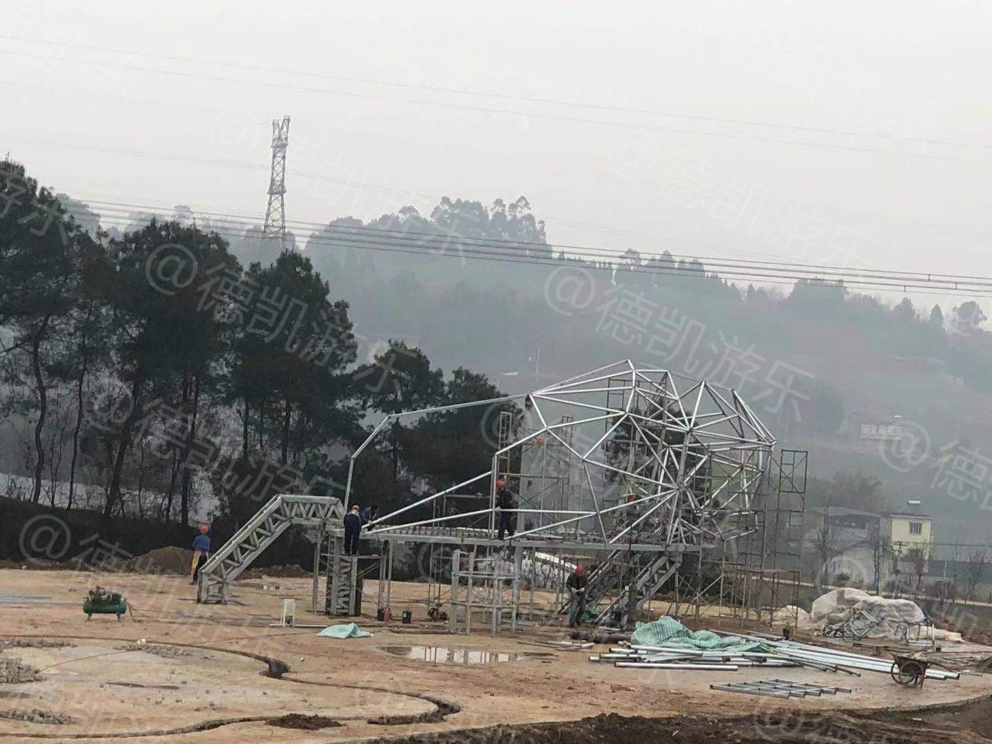 年關(guān)將至,位于重慶景區(qū)公園游樂設施有序安裝中。