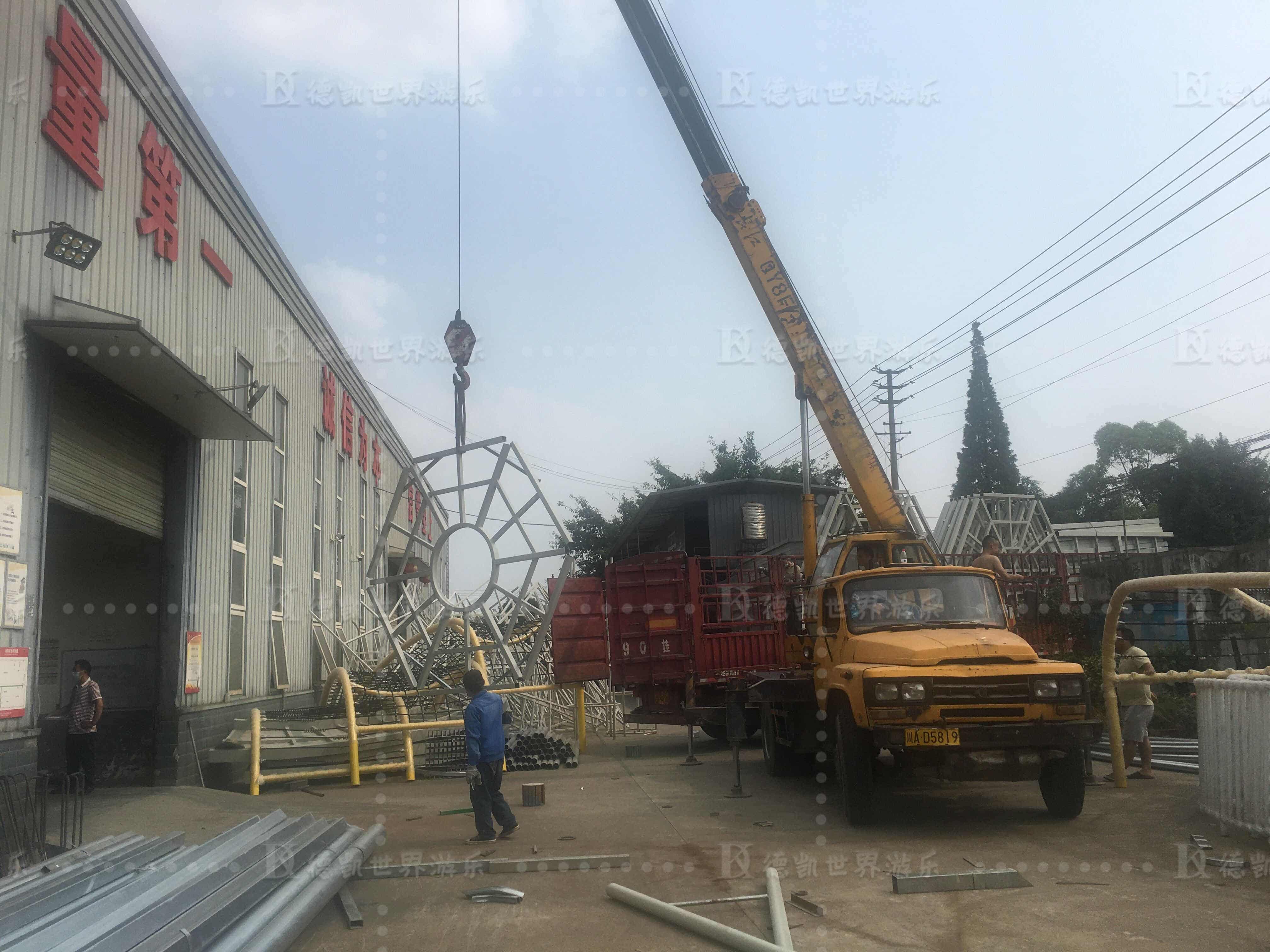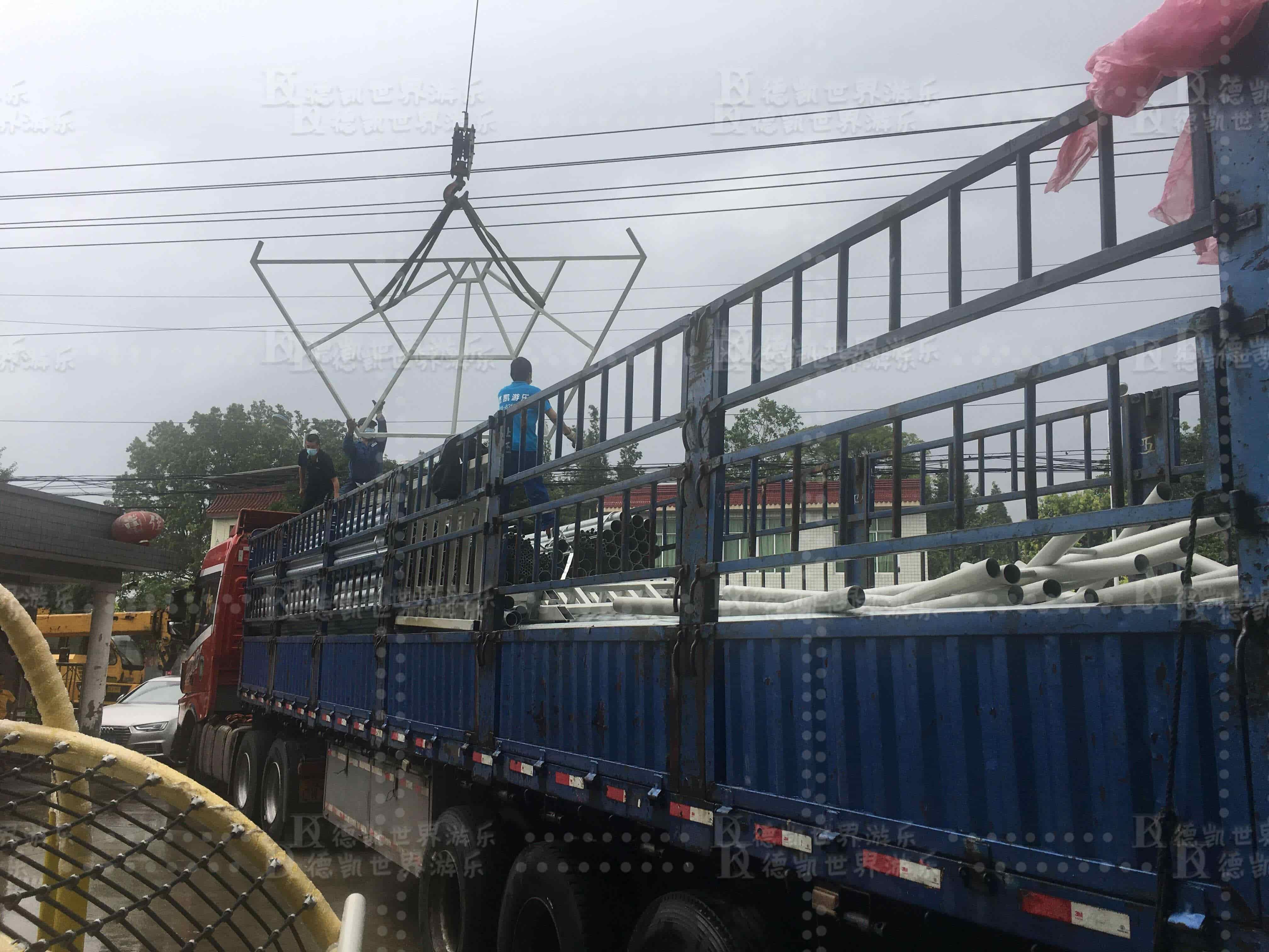 發(fā)往山東青州南陽王府樂園設(shè)施出庫了,如期完成生產(chǎn)任務(wù),現(xiàn)部分設(shè)施開始裝車運往山東青州項目地。