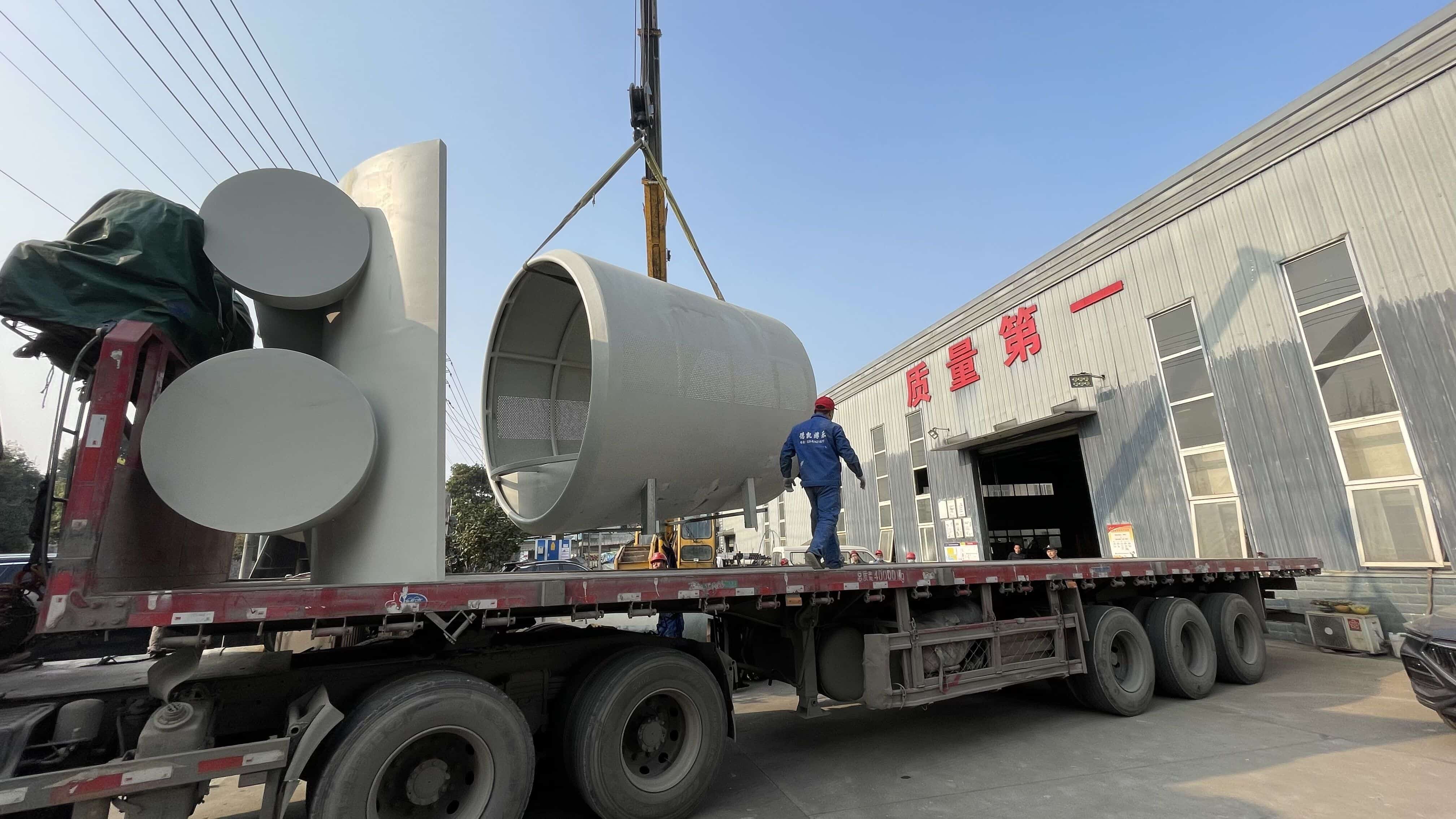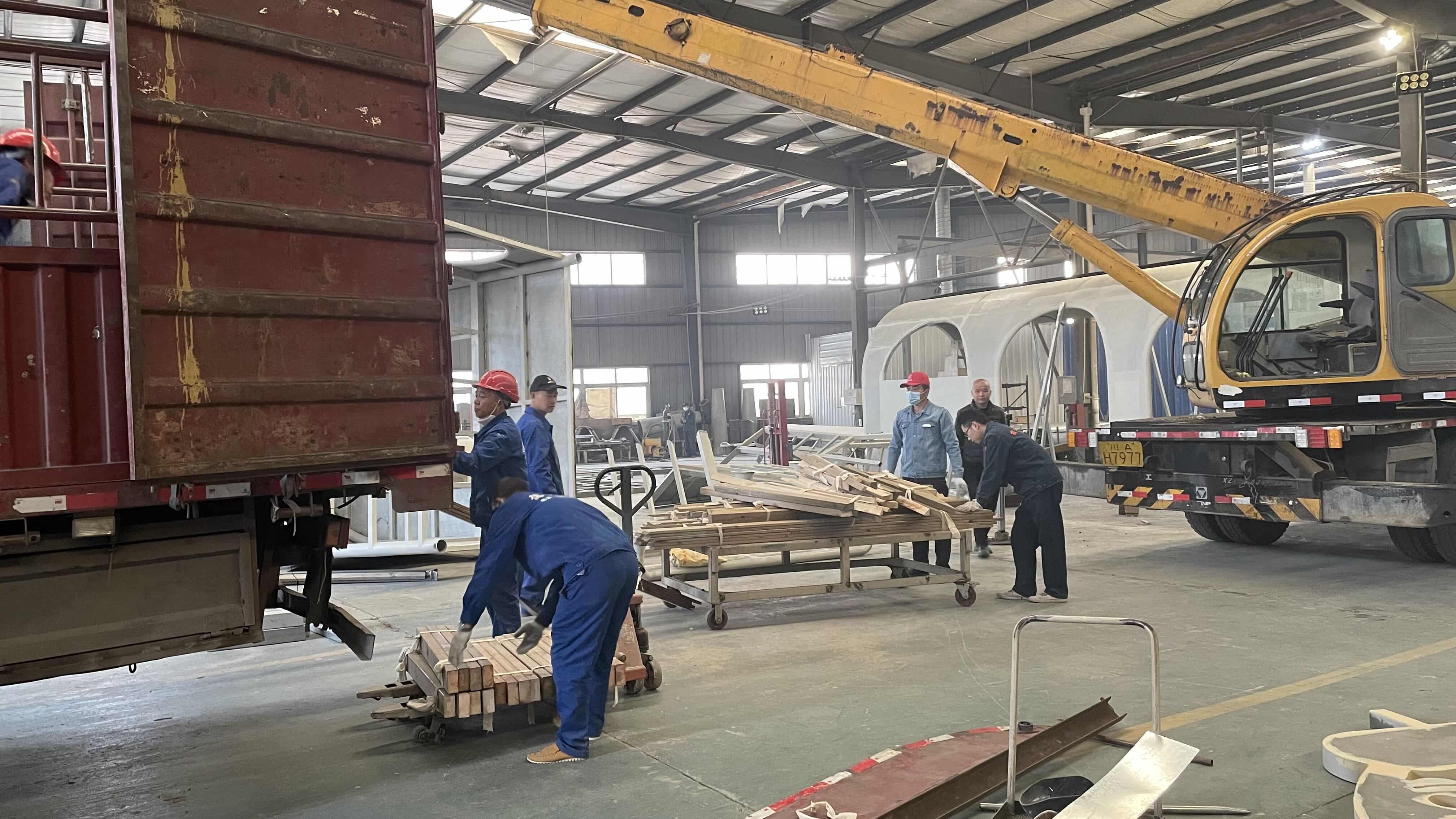 火山火車主題樂(lè)園部分設(shè)施開(kāi)始出庫(kù),運(yùn)輸?shù)侥康牡亻_(kāi)始安裝。