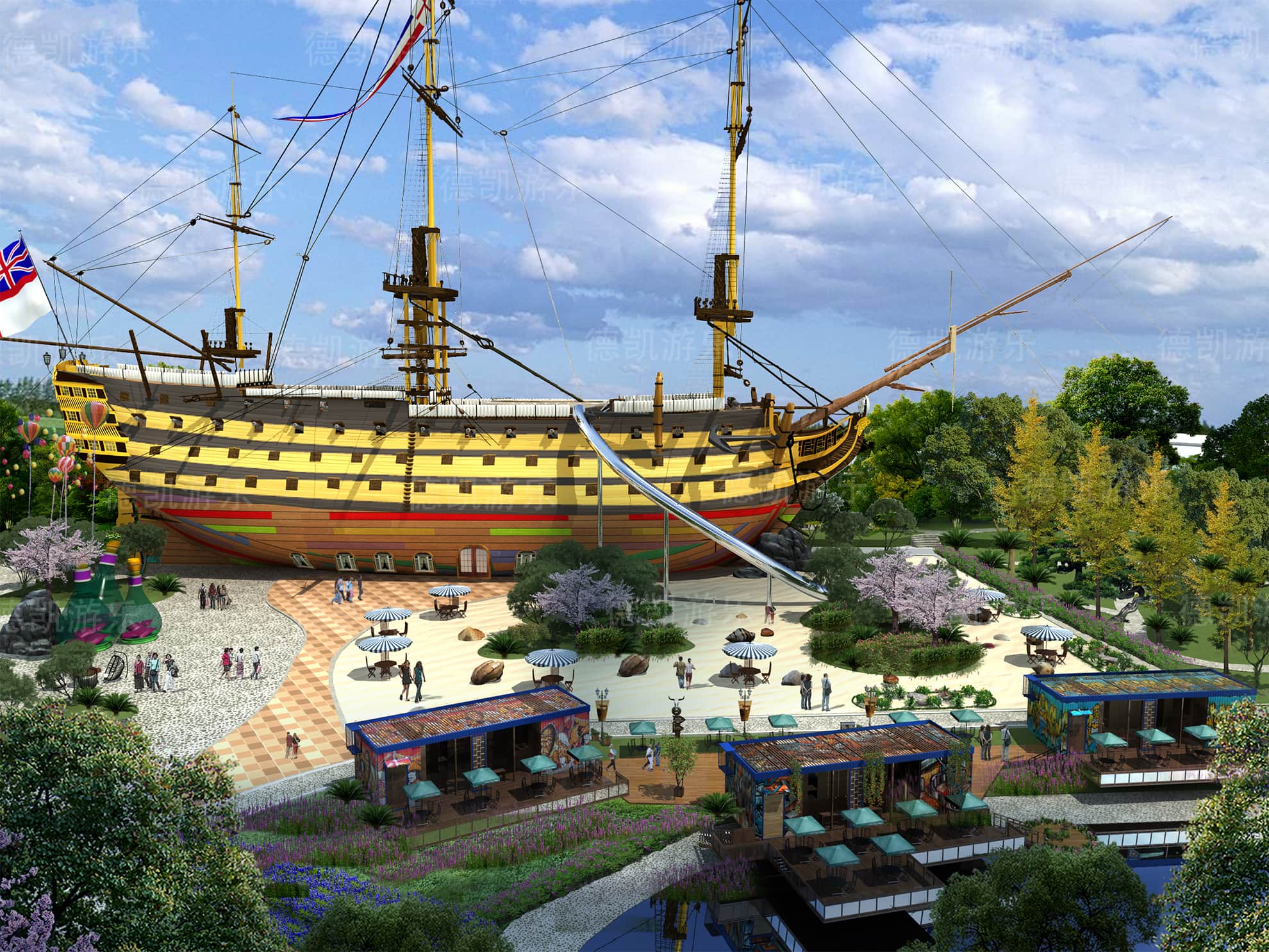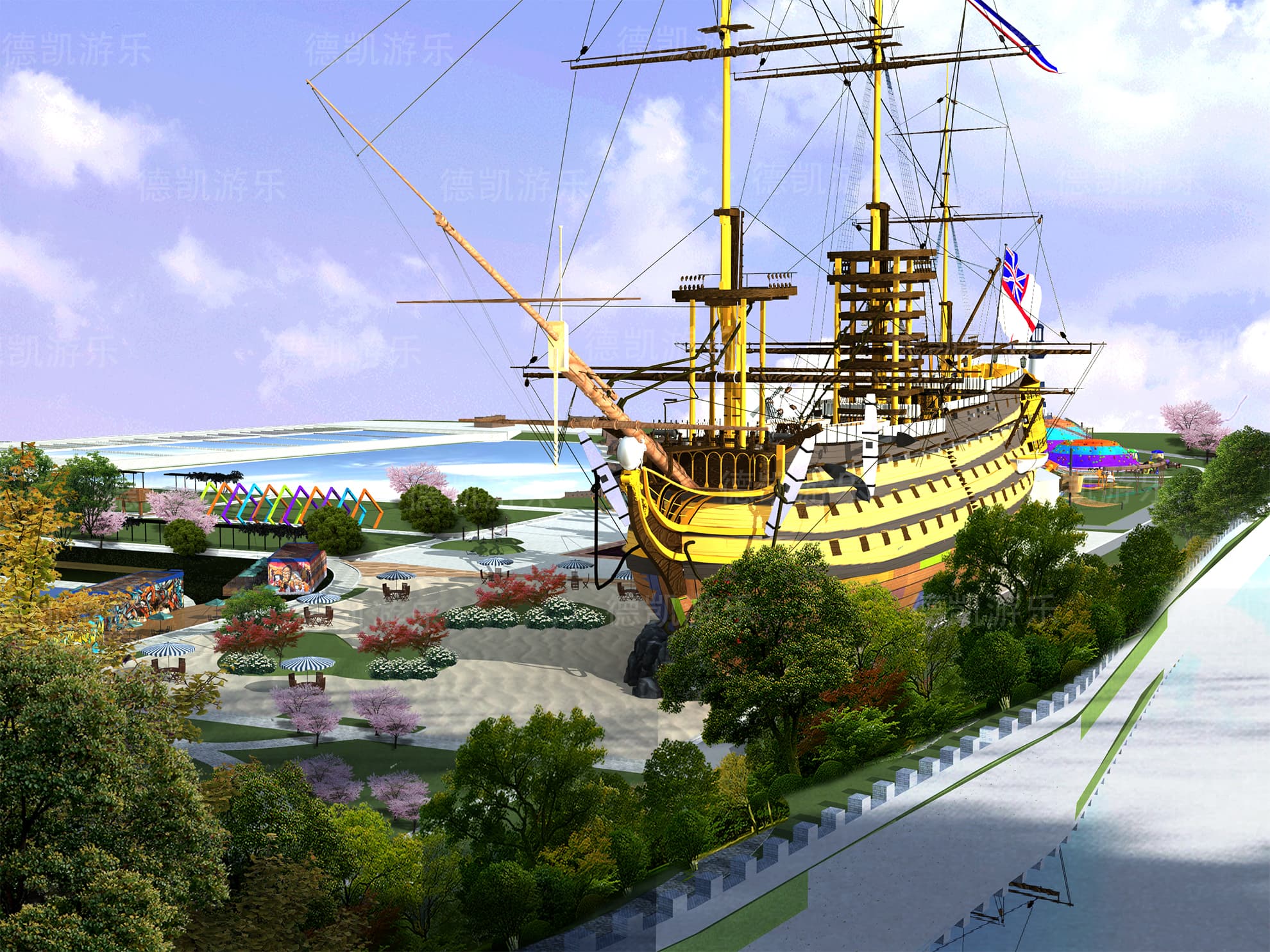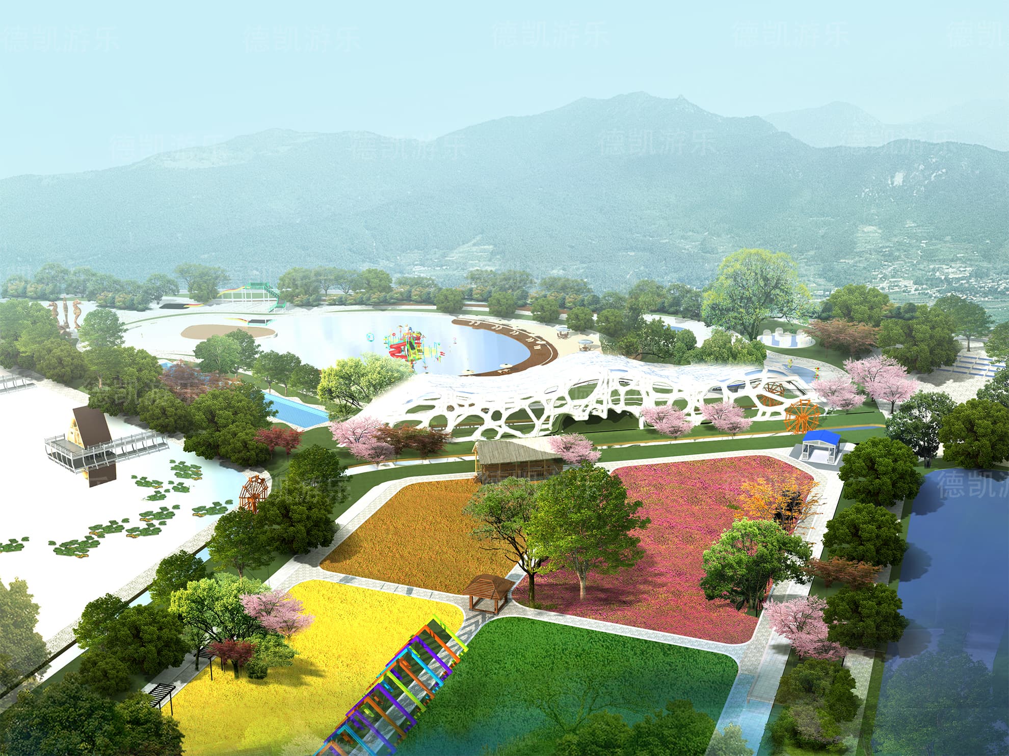 后期的效果圖是已經(jīng)比較完美的了,不僅是設(shè)施設(shè)備的完善還是整體規(guī)劃細(xì)節(jié),景觀性細(xì)節(jié)幾乎完美的效果圖,客戶可以從效果圖看到建成后的游樂園的整體效果,有利于客戶評(píng)估客源定位。