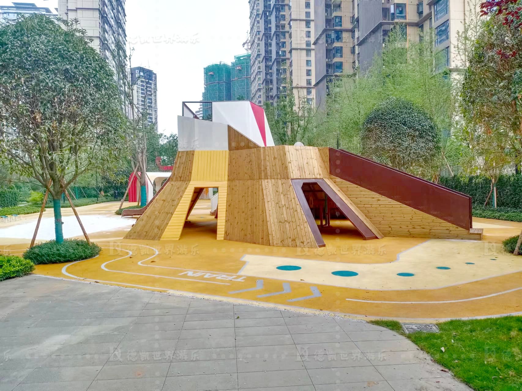 在這片樂土,為了給孩子提供探索和活力的空間,也為人們提供聚會(huì)和庇護(hù)的場(chǎng)所。樂園以火車+火山組合形式為主題,布置了多種游玩元素的游樂設(shè)備,一個(gè)神奇的游樂空間誕生于此。