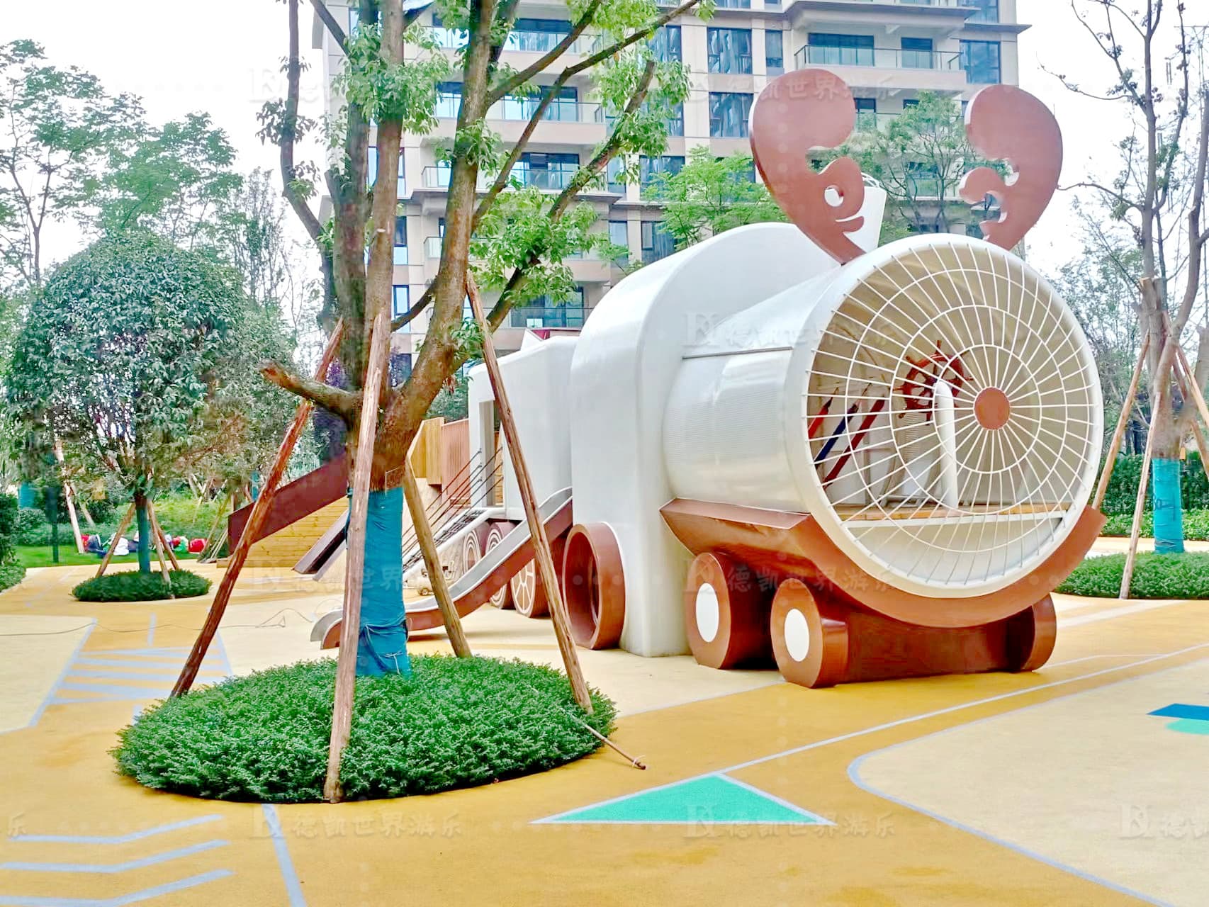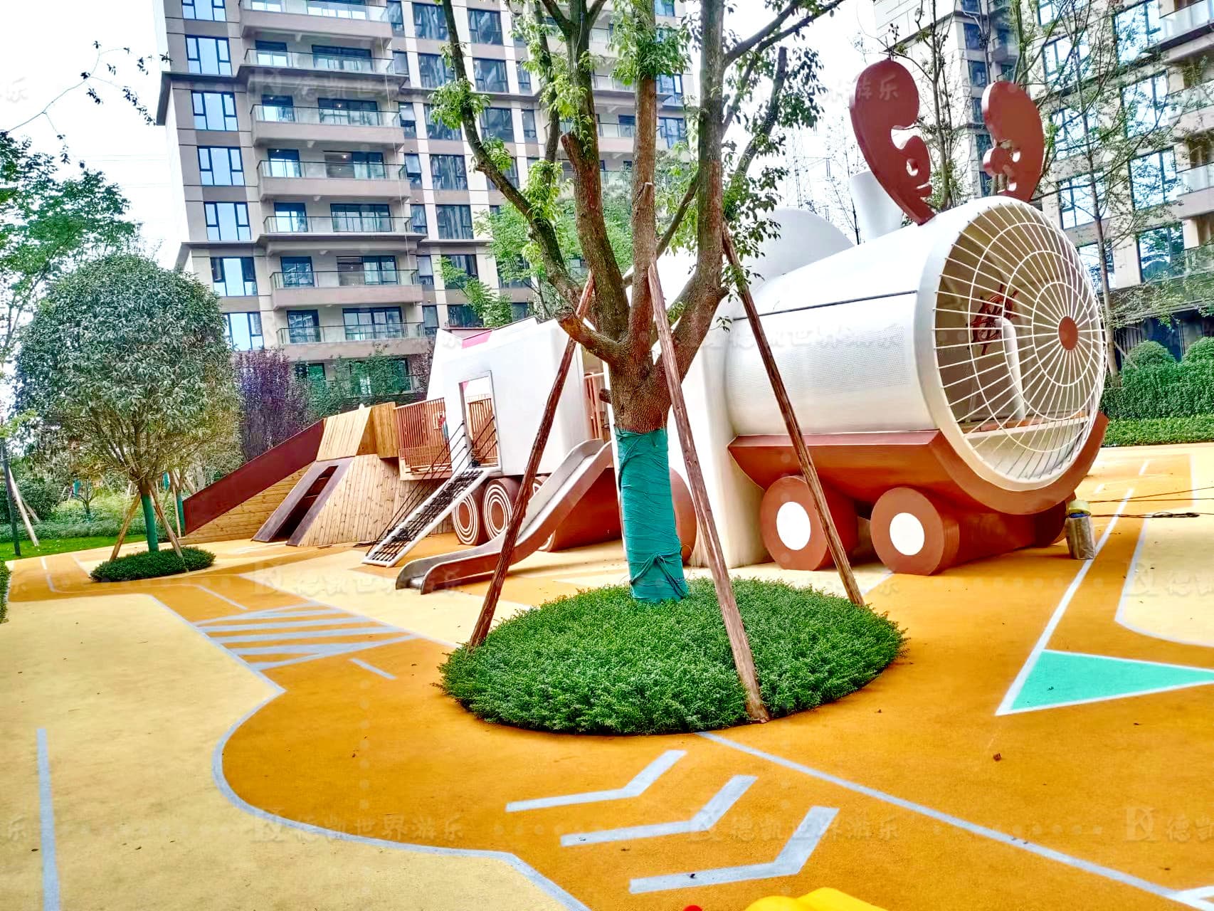 火山火車樂園位于成都市雙流區(qū)萬順路,從兒童熱衷的元素為切入點(diǎn),打造的一個(gè)社區(qū)樂園。