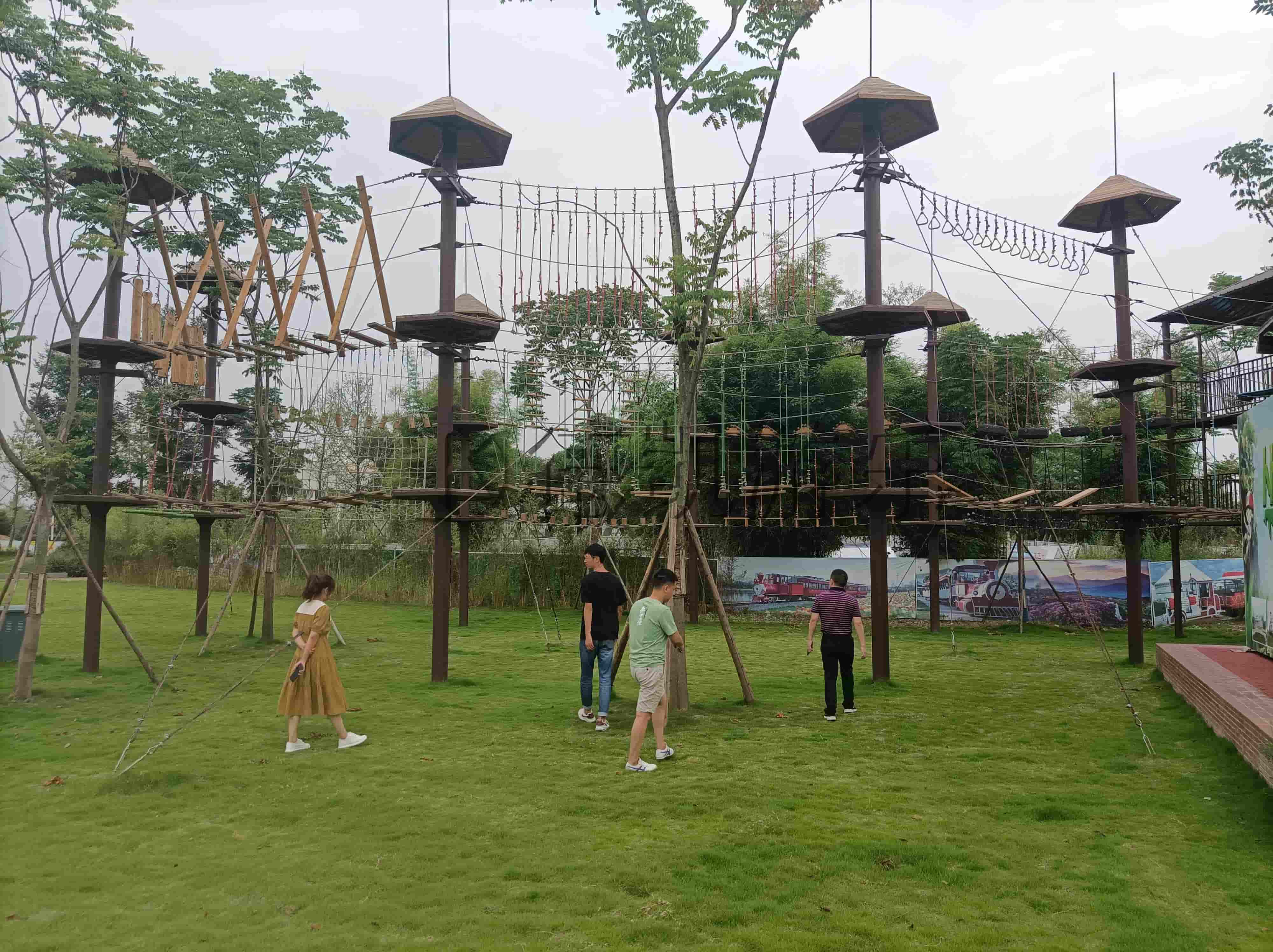 高空項目為叢林樹屋、叢林拓展項目:叢林樹屋項目適合身高一米二以上的人群,距離地面四米以上,一般與叢林魔網(wǎng)結(jié)合建設(shè),難度系數(shù)較低,具備較好的景觀效果;叢林拓展項目適合身高一米四以上的人群,項目距離地面一般超過八米,難度系數(shù)較高,因此適合團隊參加,通過參與者之間相互協(xié)助、鼓勵來完成叢林拓展項目。根據(jù)林地現(xiàn)場條件的不同,能夠建設(shè)的游樂項目也不同,根據(jù)林地現(xiàn)場地形和樹木條件作出規(guī)劃并制定好方案,充分的將游樂項目與現(xiàn)場環(huán)境相融合日,也只有這樣才能創(chuàng)造更高的游玩及經(jīng)濟價值。